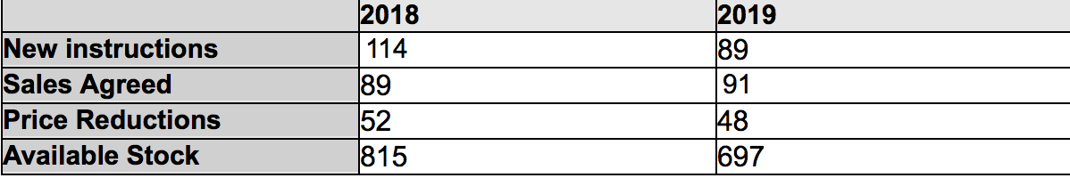 There is less stock and a lower number of new instructions compared to November 2018, but with Brexit and an election upon us this could be the reason. People may be hesitating to put their property on the market however the buyers out there are committed and want to buy.