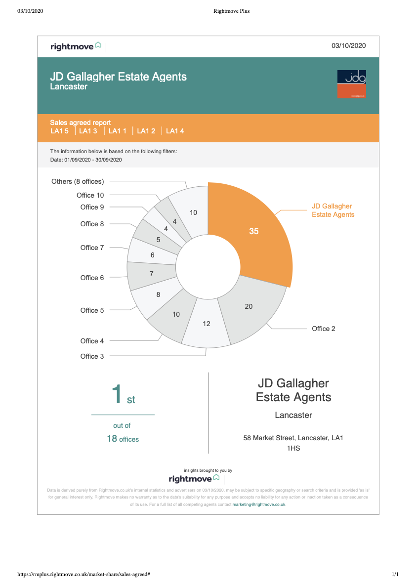 18 agents were involved with the 121 property sales in September. At JDG we agreed 35 of these sales (28.9% of all the sales). Many of our properties were snapped quickly. Westbourne Road, Ingleborough Road, Ulster Road and Clarence Street were snapped up in days. Balmoral Road sold even befor it hit Rightmove.