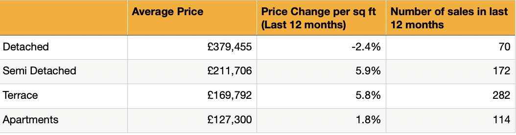 Price per square foot across the city now averages £218, up from £214 last month. Apartments command £194 per sq ft, while detached homes top the scale at £285 per sq ft.