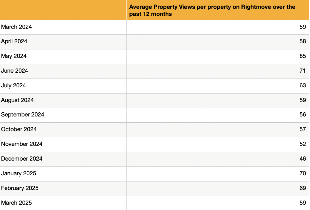 In Lancaster, viewing levels are broadly consistent with March last year, despite a slight dip from February. It points to a steady, resilient marketplace where buyers remain engaged—though with a more considered approach.
