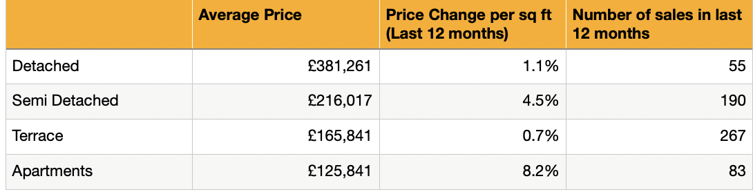 By property type, terraced homes led the market with 26 sales agreed, followed by semi-detached homes at 16. Apartments also performed steadily with 11 sales. Larger detached homes saw more limited movement, reflecting a more cautious approach at higher price points.