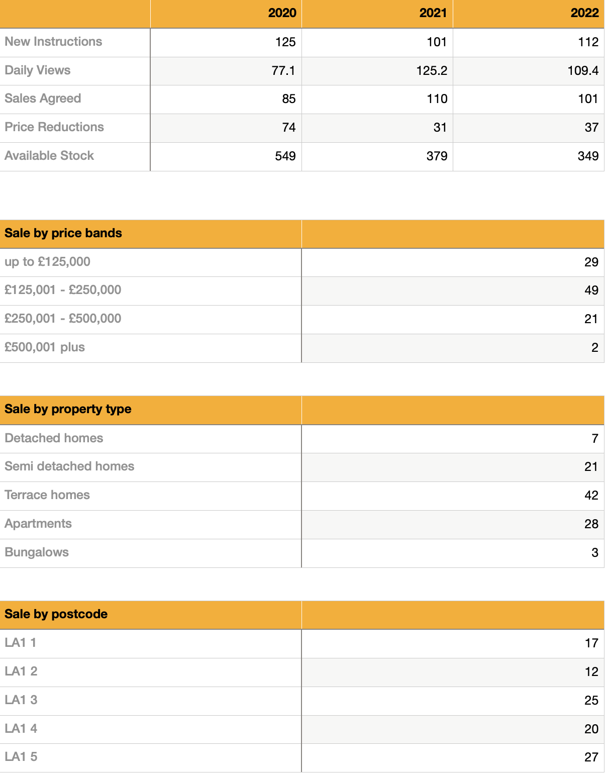 The average price of a home in Lancaster (LA1) now stands at £165,234. This is a decrease of £602 from last month, the 2nd month in a row prices have dropped slightly. The chart below shows you how different property types have performed over the past 12 months.