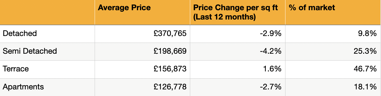 The average property price in Lancaster is currently £174,838. While prices have decreased compared to 12 months ago, they have shown a slight increase of £1,209 since the beginning of the year.