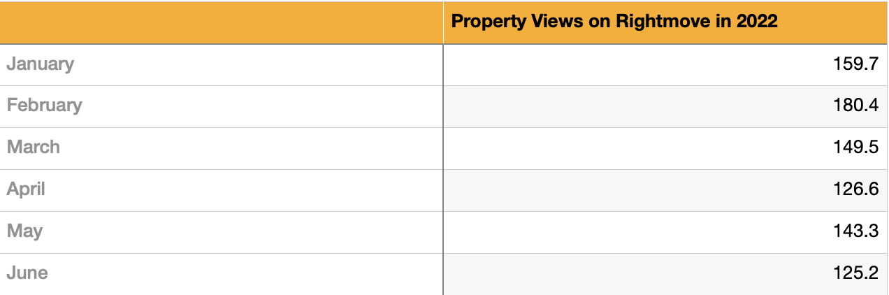 Buyer demand is still high and certainly, the number of daily views on Rightmove is higher than it was a year ago. However, buyers are beginning to take longer to choose a home, with the average property now taking 34 days to go under offer. As you can see on the table below, In June, daily views were the lowest they have been all year.