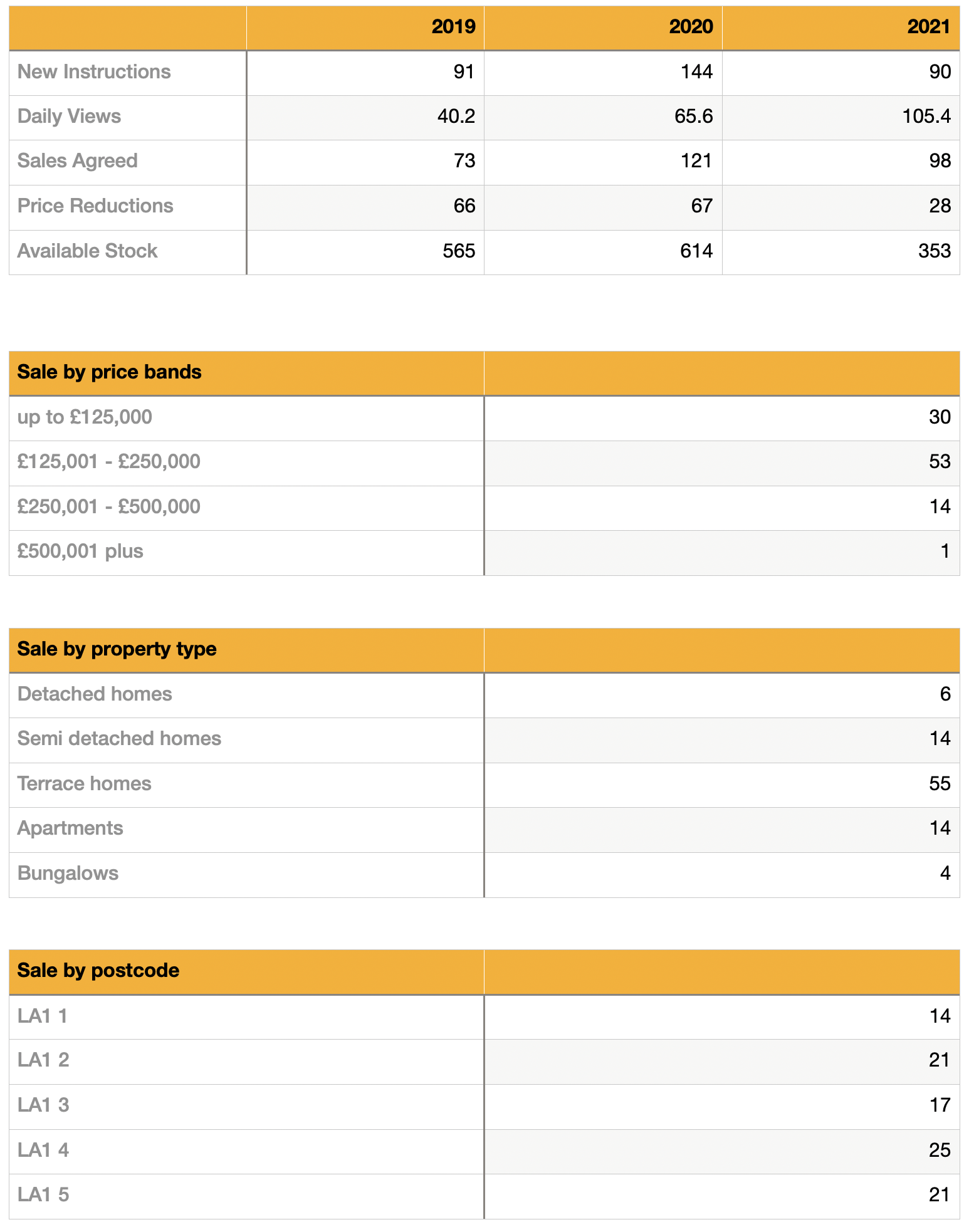 At JDG we agreed on 31 of these sales which equates to 31.6% of all the property sales in Lancaster (LA1).