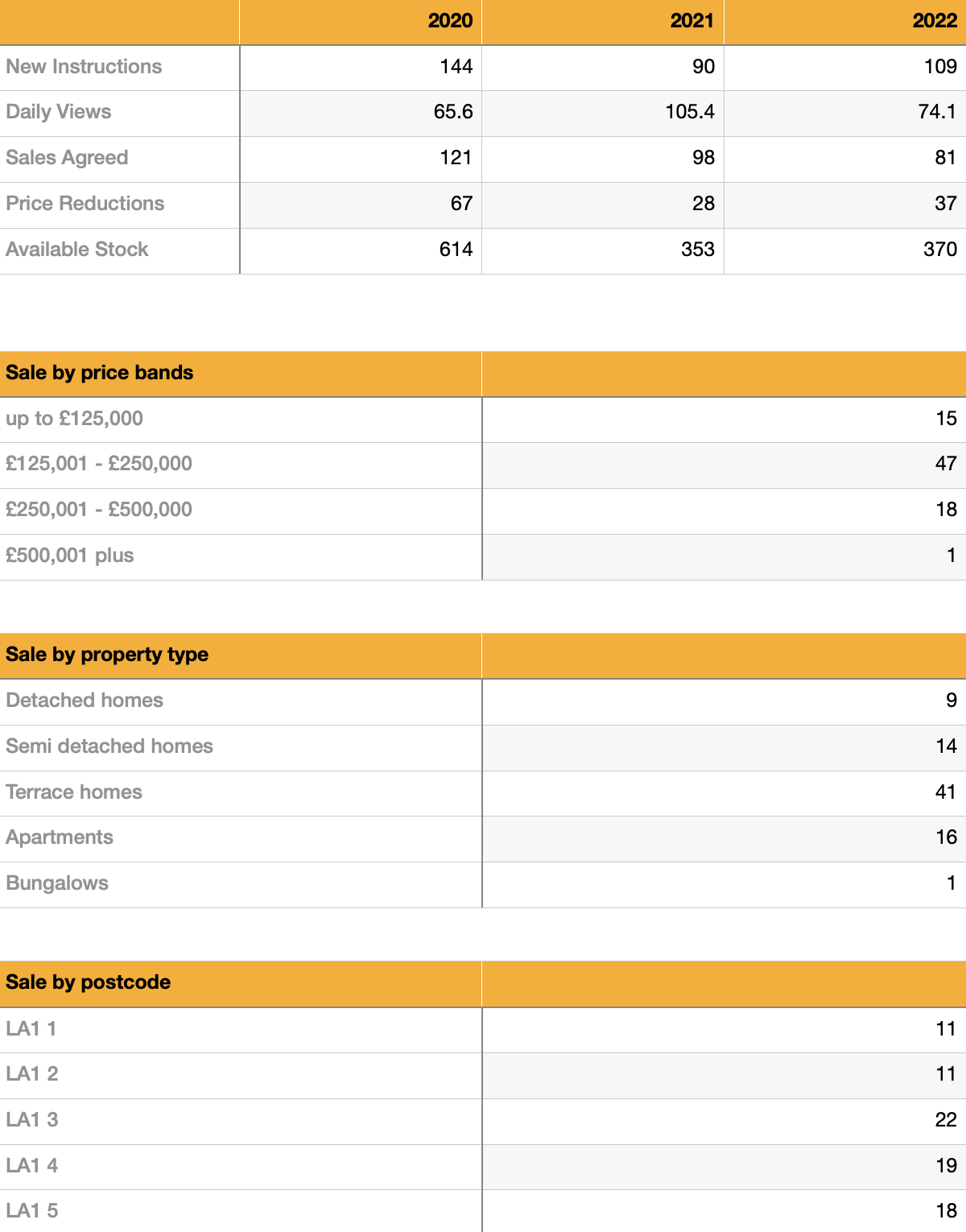 Whilst price reductions are lower than they were last year, it worth noting that some properties are now taking longer to sell. The average property is taking 35 days to sell ( at JDG over 70% of our sales were agreed in under 2 weeks ) however there are currently 104 homes on the market that have been for sale for 12 weeks or longer. When you consider there are only 272 homes available for sale in Lancaster (LA1), this means that 38.2% of all homes are struggling to find a buyer.