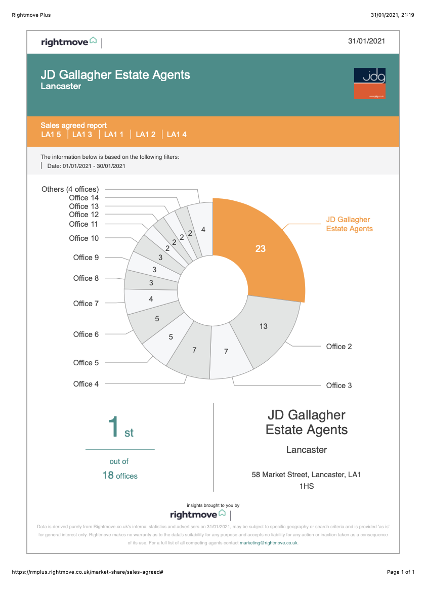 27.1% of all the property sales in Lancaster (LA1) were with our company in January despite the fact we don’t have the most to sell!
