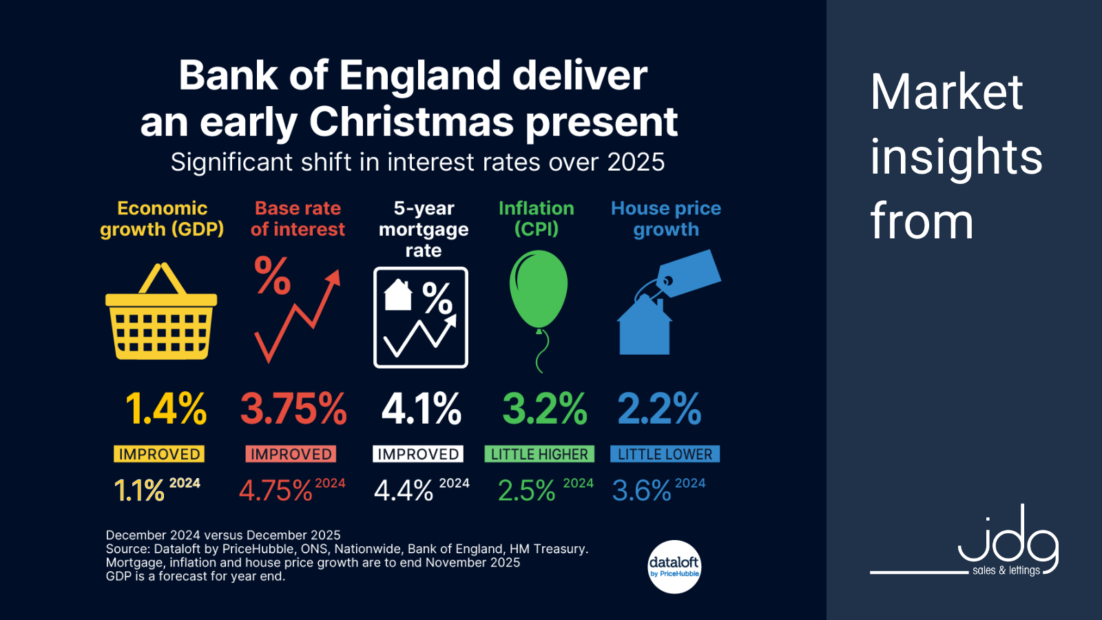 From a wider economic perspective, 2025 delivered some welcome improvements. The Bank of England base rate reduced to 3.75%, down from 4.75% a year earlier, helping ease borrowing costs. Average five-year mortgage rates settled around 4.1%, improving affordability for many buyers.