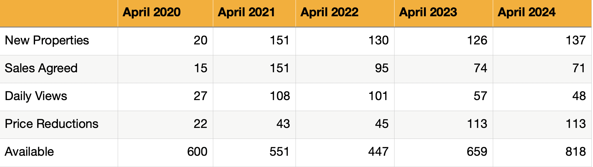Buyer demand on the property portals is lower than it was this time last year, which are early signs of the market turning towards a buyer market, however, it has stopped steady throughout the first 4 months of the year.
