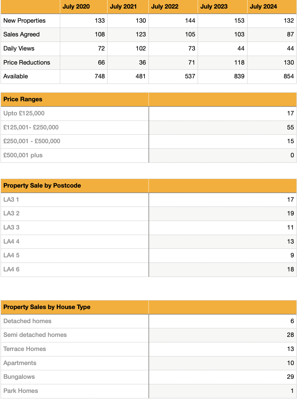 In July, 21 different estate agents facilitated the sale of 87 properties. Our team at JDG achieved excellent results, securing sales for homes on Low Road, Low Lane, Hadrian Road, and more.