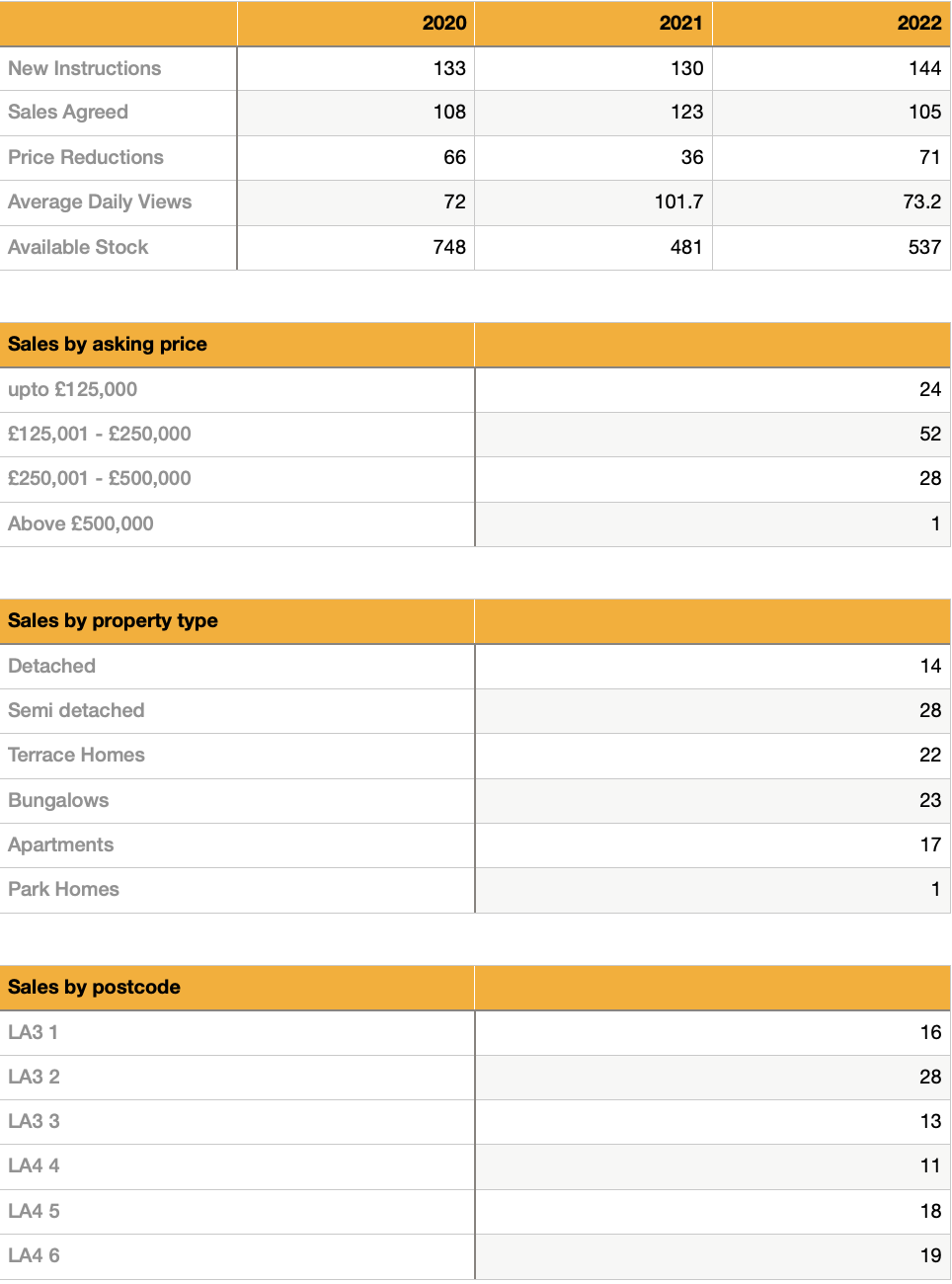 Buyer demand in Morecambe is slowing. Month by month it has decreased. It is always expected in the Summer holidays as people focus on the annual holiday, however we have to note that it has almost halved since the beginning of the year.
