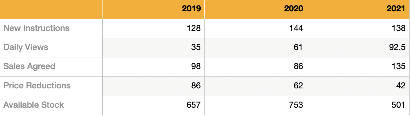 As you can see above, family-sized homes ( semi-detached and detached ) have accounted for 42% of all the property sales. These people tend to need more space, gardens have certainly been a priority for this buyer group.