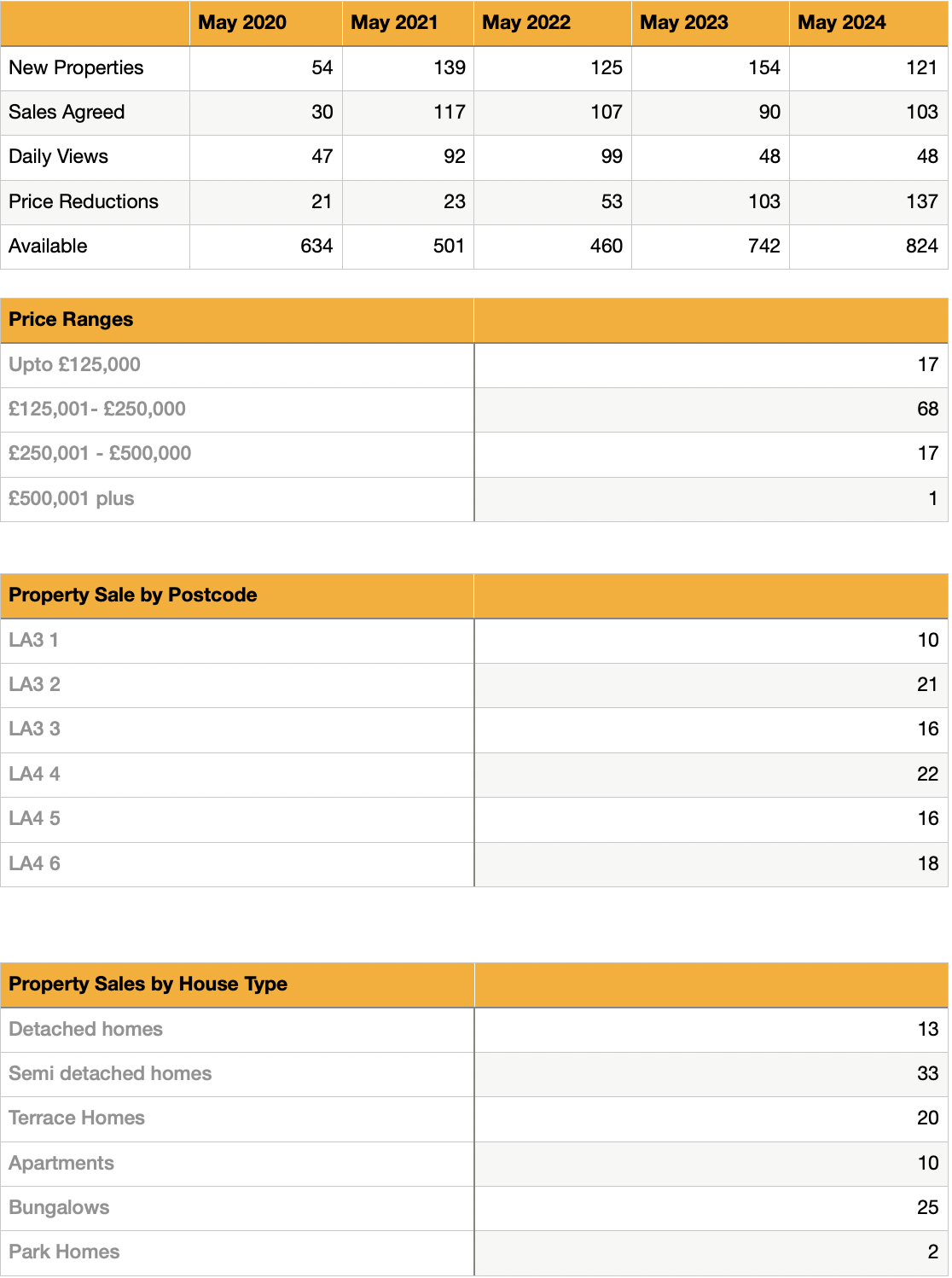 As we enter June there are currently 705 homes available for sale in the Morecambe market. Out of these, 426 (60%) have been listed for sale for 12 weeks or longer. This is a concern. Across the UK, the average time it takes to find a buyer is 62 days, yet in Morecambe, the average is 99 days. This is why I will continue to say that sensible pricing is key.