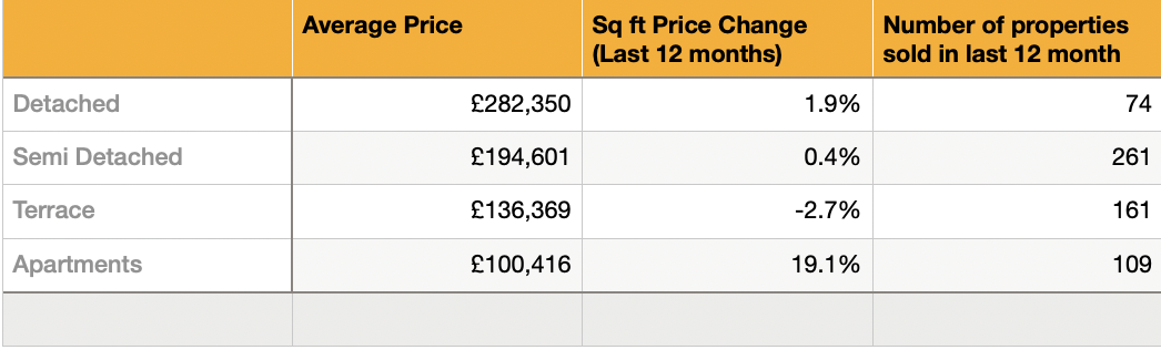 The price paid per sqft remains steady at £191 per sqft. What’s interesting to see is how this changes by property type.