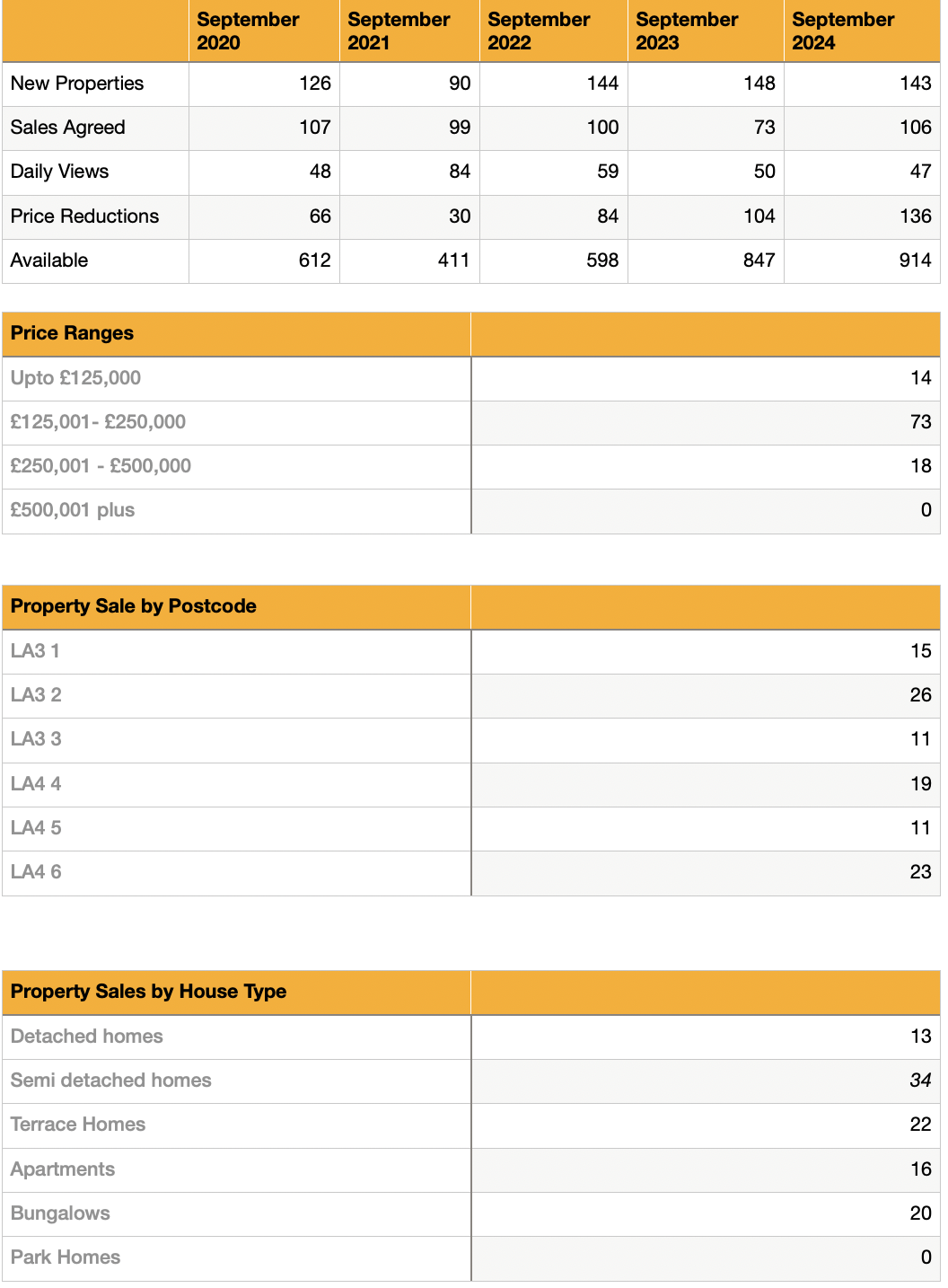 In September, 18 estate agents facilitated the sale of 106 properties across Morecambe. We agreed sales on Branksome Drive, Aire Close, St Albans Road, Leycester Street and Rikniyld Way to name a few.