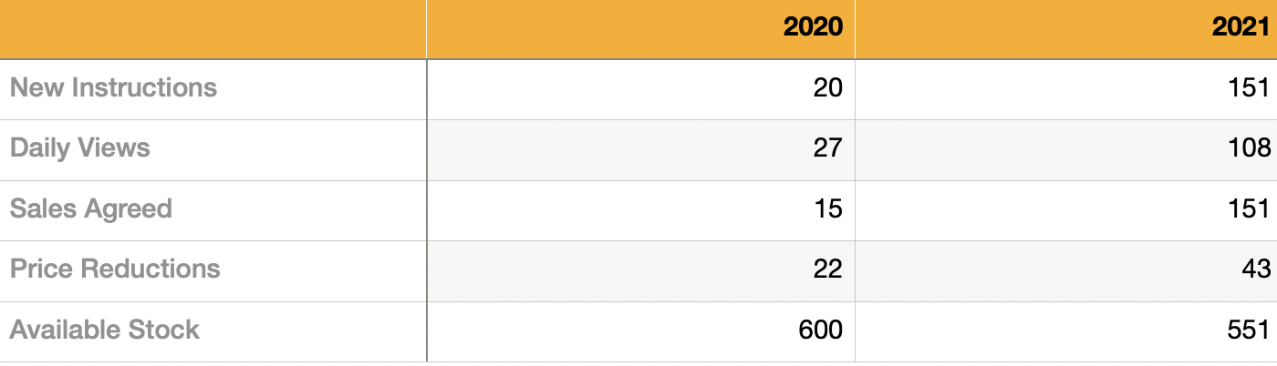 The average daily number of views on Rightmove this year was 108 per property. In 2019 this was 37.8. This figure has almost trebled! Demand is up. Supply is down and that is what is pushing property values up.