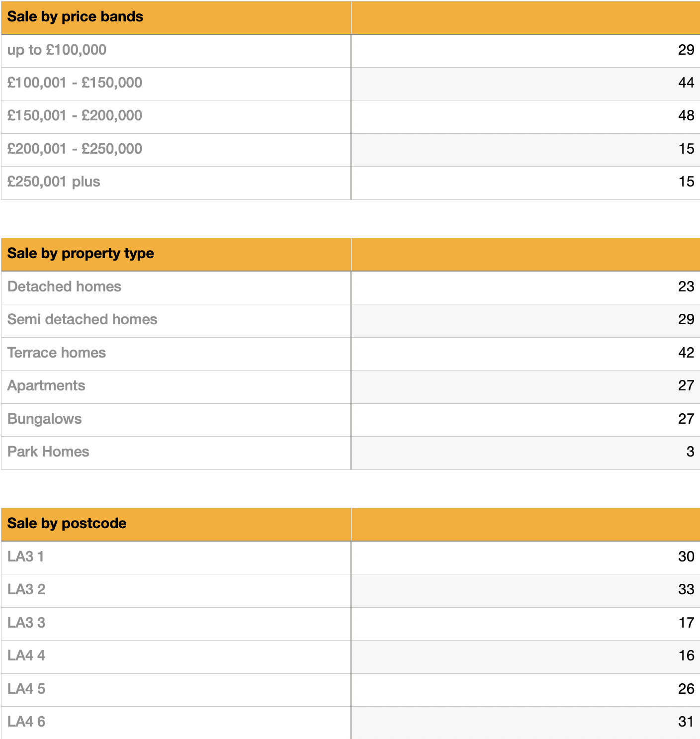 Something to note is that only 9.9% of all property sales were above £250,000. The most expensive property sale was a detached home on Broadway at £389,950. We have noted the same in the Lancaster market that the higher end market is showing signs of slowing. Could this be due to the higher end stamp duty coming to an end in June?
