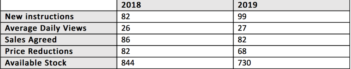 Compared to last month where new instructions had dropped year on year, October has seen a marked increase in new instructions by just over 20%. There is significantly less available stock overall compared to October last year and as a result proportionately fewer price reductions. Despite Brexit worries, sales agreed are only down by 4%, which in our opinion is nothing to be too concerned about given the current economic climate.