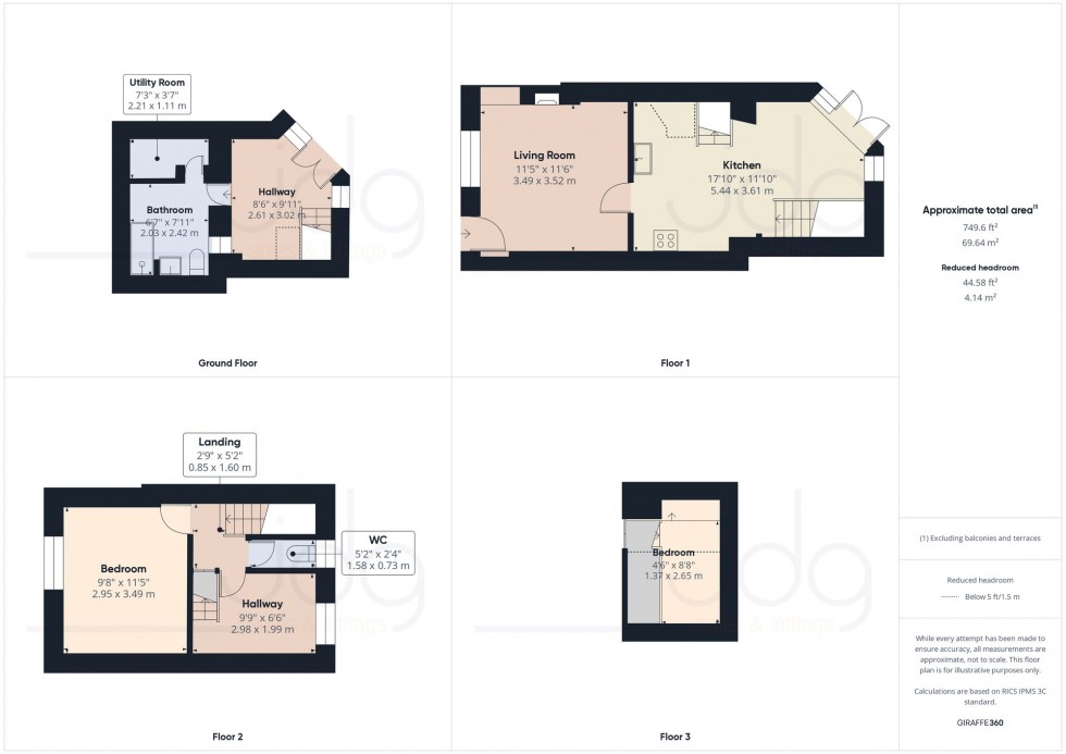 To the first floor is the main double bedroom and a second double bedroom which includes a mezzanine sleeping area and built-in storage, ideal for flexible use. A WC is also located on this level. The lower ground floor offers a versatile space – currently used as a home office – and leads to the modern, Moroccan-inspired shower room with underfloor tiling, rain head shower, and a built-in seat. A discreet storage area houses the washing machine.