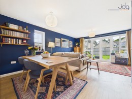Upstairs, the main bedroom is smartly decorated in rich green and grey, complemented by in-built wardrobes and an en-suite shower room. Three further bedrooms offer flexible use: two are presently used as a child’s bedroom and a nursery, and the fourth is a calm, well-lit home office. The family bathroom is fitted with a white suite and shower over the bath.